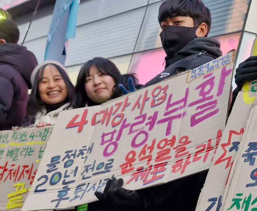 윤석열을 낳은 체제는 그대로 둔 채, 퇴진 이후로 진짜 민주주의를 미루는 분위기를 바꾸고자, 대전의 기후정의/동물권 활동가들이 12월 4일 피켓을 들었다. 지구별 온 생명을 오로지 이윤으로만 따지는 자본주의, 오염과 죽음을 외주화하고 식민화하는 제국주의 체제를 뒤집어엎을 때, 진짜 민주주의가 가능하다고 외쳤다.