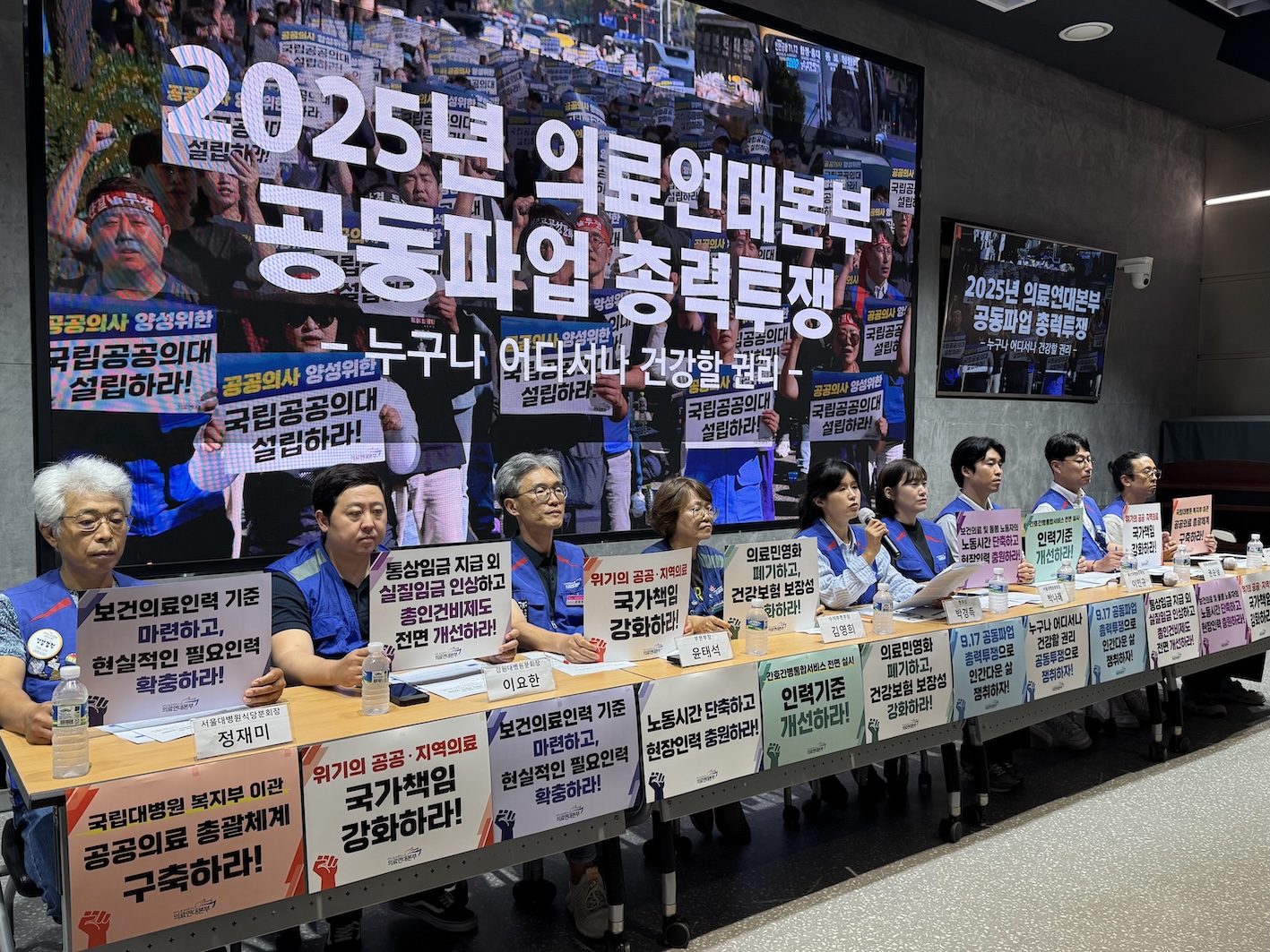 민주노총 공공운수노조 의료연대본부(이하 ‘본부’)는 29일 오전, 서울 종로구 서울대병원 본원 김종기홀에서 기자간담회를 열고 ”공동 파업 총력 투쟁” 계획을 밝혔다.