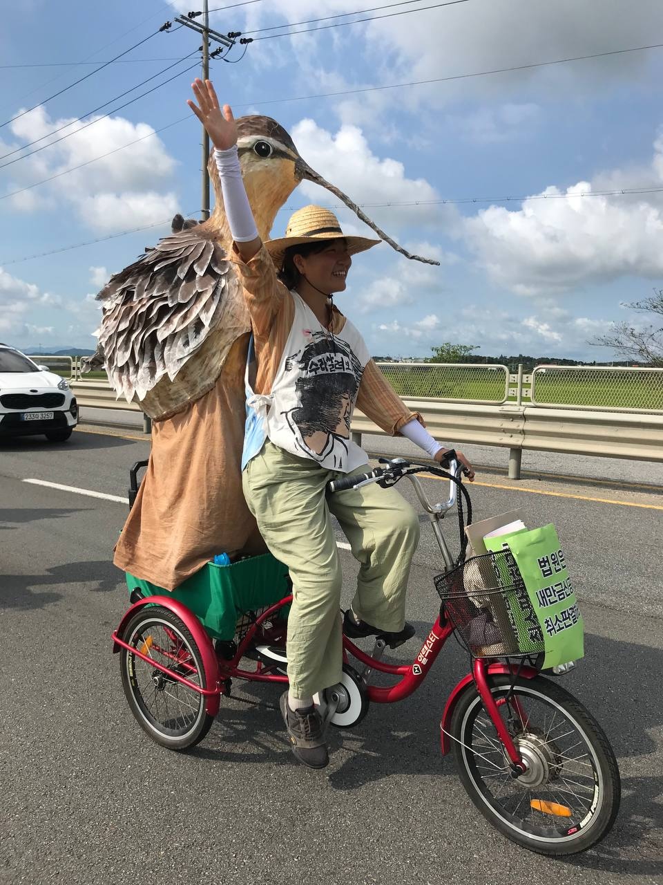 그래서 <새, 사람 행진단>은 행진을 하면서 만나는 사람들에게 새만금신공항뿐만 아니라, 다른 신공항 건설계획들도 전면 백지화되어야 한다고 말하고 있다. 인간들의 무지와 탐욕으로 기후재난을 가속하는 생태환경에 대한 침탈과 훼손을 멈춰 세우고, 인간과 자연이 깊이 연결된 존재로 서로를 돌보며 살아가는 것을 기후재난 시대에 새로운 규범이 되어야 한다고도 외친다.