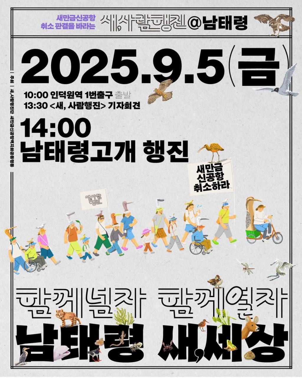 남태령은 지난 겨울 시민들이 내란세력의 폭거에 맞서 소외되고 외로웠던 사회적 약자들과 연대하며 민주주의를 지켜낸 곳이다. 절차적 민주주의는 지켜냈지만, 아직도 인간과 비인간 존재들이 함께 개발과 착취의 시대와 결별하고 생명과 공존의 시대로 가야 하는 여정이 남아 있다. 그 길을 함께하겠다는 결의를 가지고 9월 5일 남태령에서 만나자. 모두 함께 새사람이 되어 남태령을 함께 넘자. 혹독한 기후위기의 시대, 누구도 뒤에 남겨지지 않는 민주주의를 완성할 새 세상을 함께 열자.