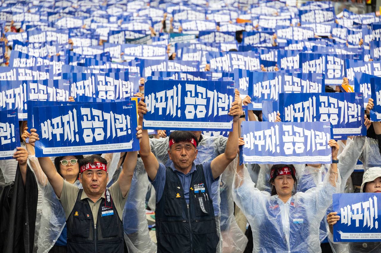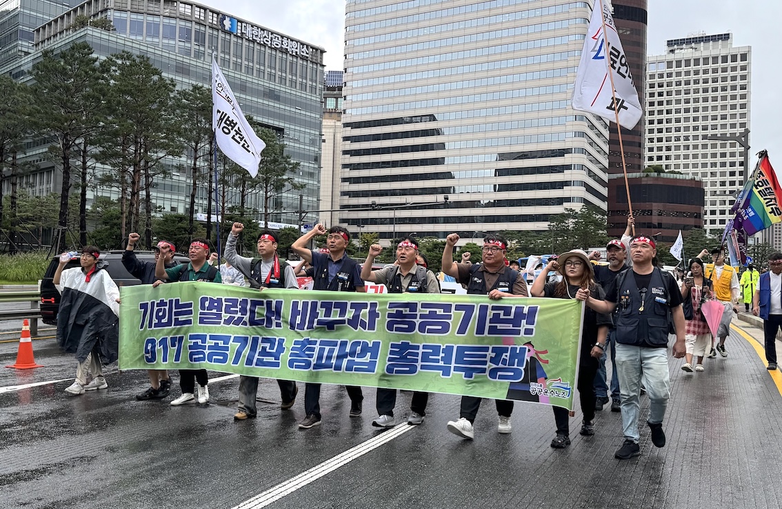 내려오는 비를 온몸으로 맞으며, 1만여 명의 공공기관 노동자들이 “공공성 강화”로 모두의 일과 삶을 지키려 나섰다.
