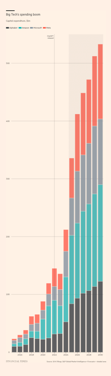 빅테크가 트럼프 대통령 임기와 결합한 것은 2기 집권의 큰 놀라움 중 하나였다. 워싱턴이나 트럼프의 영국 및 걸프 방문에 몰려드는 아첨하는 기술 재벌 무리를 설명하려면, 이념 수준이나 개인적 탐욕 같은 동기를 찾을 수 있을 것이다. 그러나 그런 동기는 하이퍼스케일링이라는 표현에 담긴 엄청난 기술 변화와 자본 축적의 압도적 추진력에 비하면 약하다. 하이퍼스케일링은 인공지능(AI)에 대한 거대한 수조 달러 규모의 확장 구축을 뜻한다.