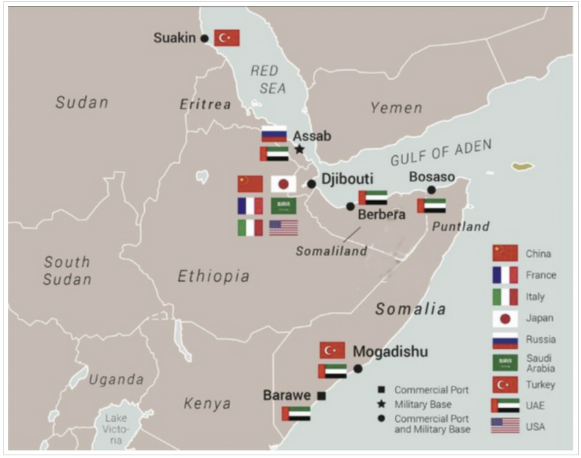 한편, 미국의 지역 파트너인 UAE는 이미 소말릴란드에서 항구와 군용 비행장을 운영하고 있다. 그런데도 아부다비는 소말리아에서도 항만과 군사기지를 운영 중이다.