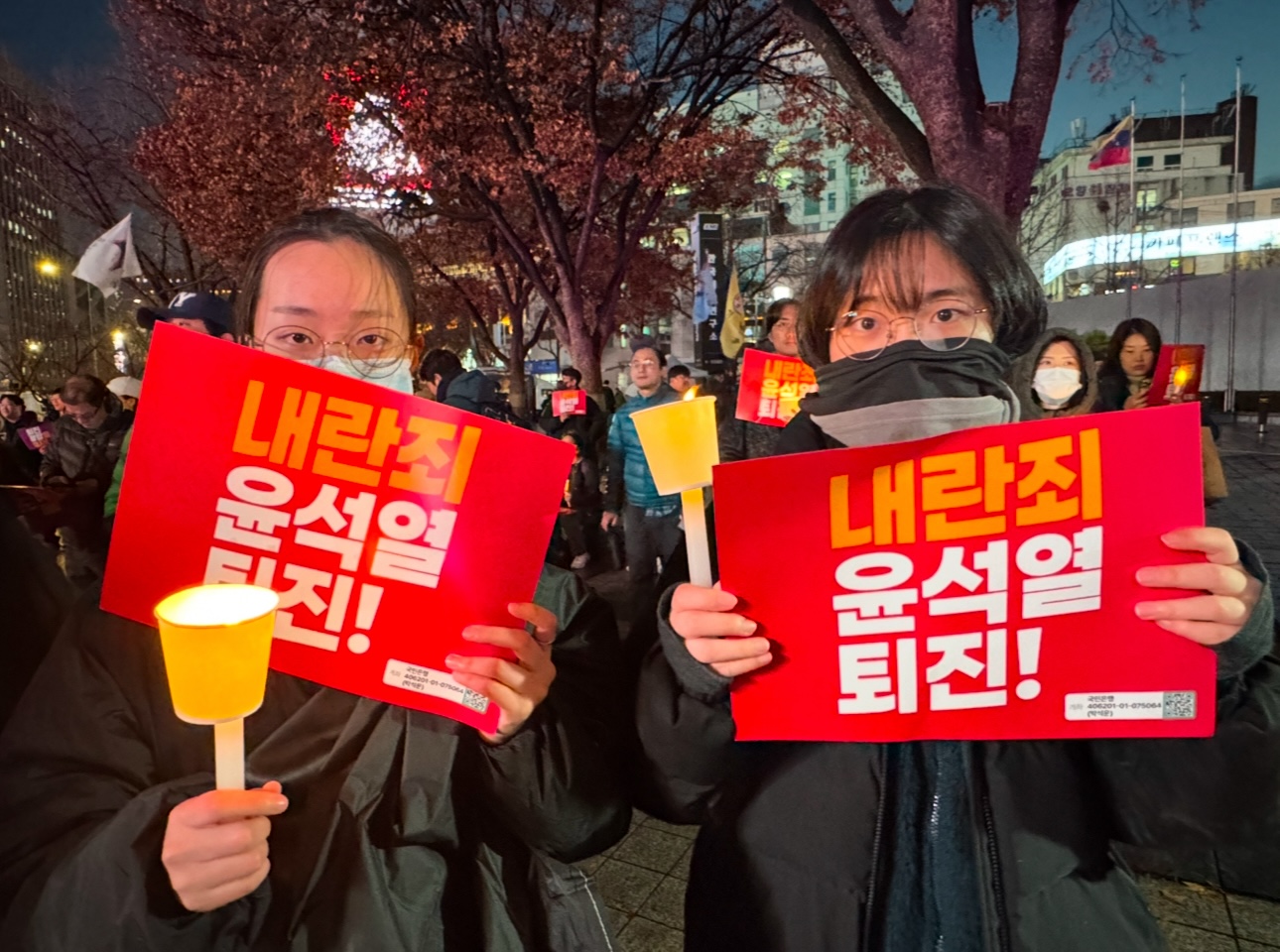 광진구에 사는 고3 청소년 유모 씨는 처음 집회에 나왔다. 평소에도 윤석열 대통령이 탄핵되어야 한다고 생각해오다, 계엄령이 내려지고 마음이 확실해졌다. 유모 씨는 "국민의 힘 의원들이 국회에 와서 다 탄핵안에 찬성 투표를 했으면 좋겠고, 그 다음에 윤석열도 그만 버티고" 내려오길 바란다고 말했다. 또한 윤석열 퇴진을 요구하며 파업에 나선 노동자들에 대한 질문에 자신도 "이제 사회에 나가서 노동자가 될 것"이고 "민주노총이나 다른 싸우는 노동자분들처럼 멋진 노동자가 되고 싶다"고 마음을 전했다.