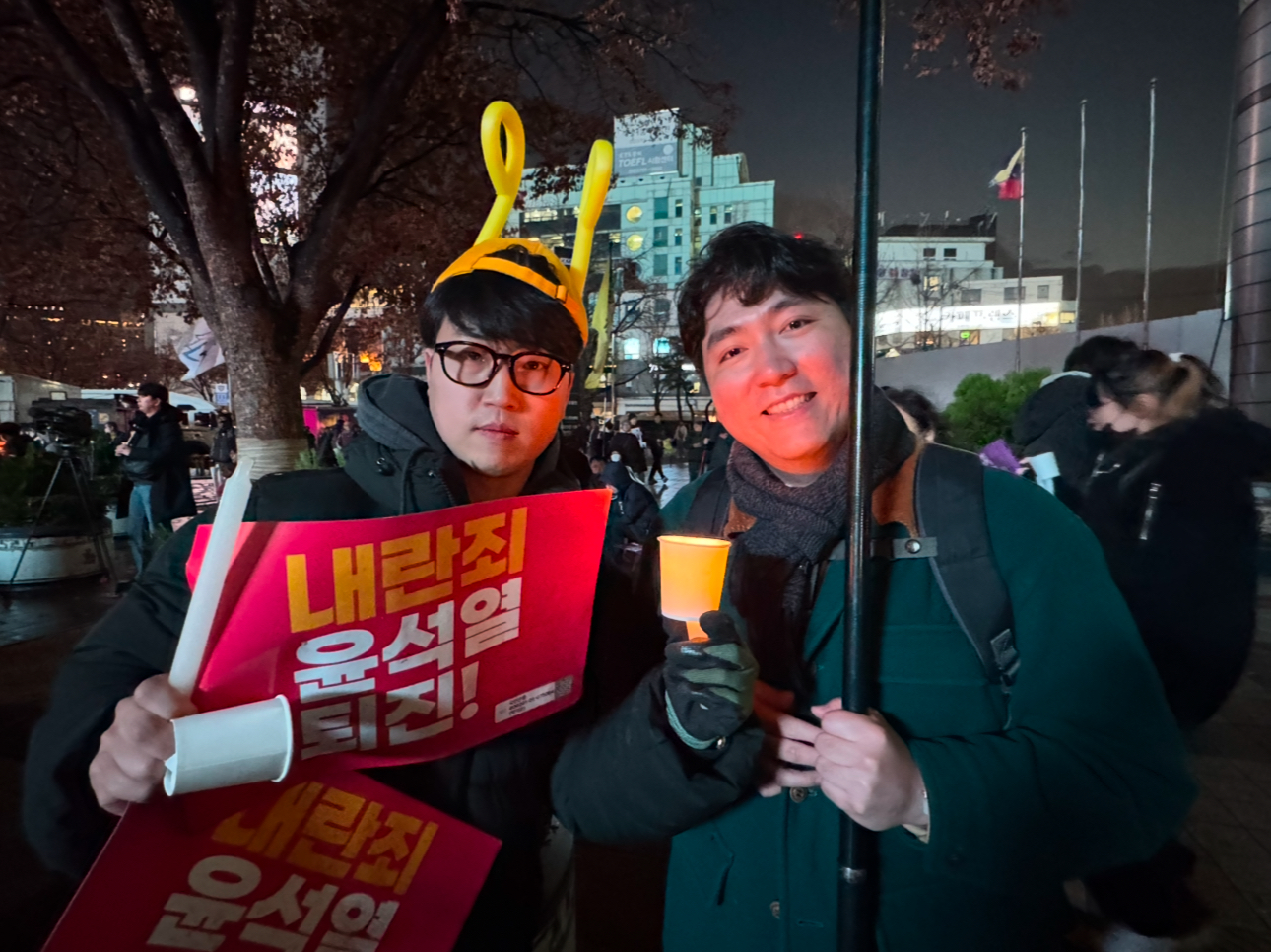 금산 간디학교에 다니는 열아홉살 청소년 김모 씨는 박근혜 대통령 탄핵 촛불 집회 이후 8년 만에 집회에 다시 참여했다. 그는 3일 밤 비상계엄 같은 일이 다시는 일어나면 안된다고 생각한다며 "시민들이 한 마음 한 뜻으로 모이는 게 중요하고, 국회가 그 말을 듣는 게 중요하다고" 말했다.