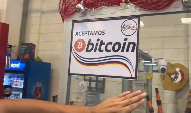 2024년 엘살바도르 한 매장에 비트코인을 결제 수단으로 받는다는 안내문이 붙어 있다출처Bitcoin News