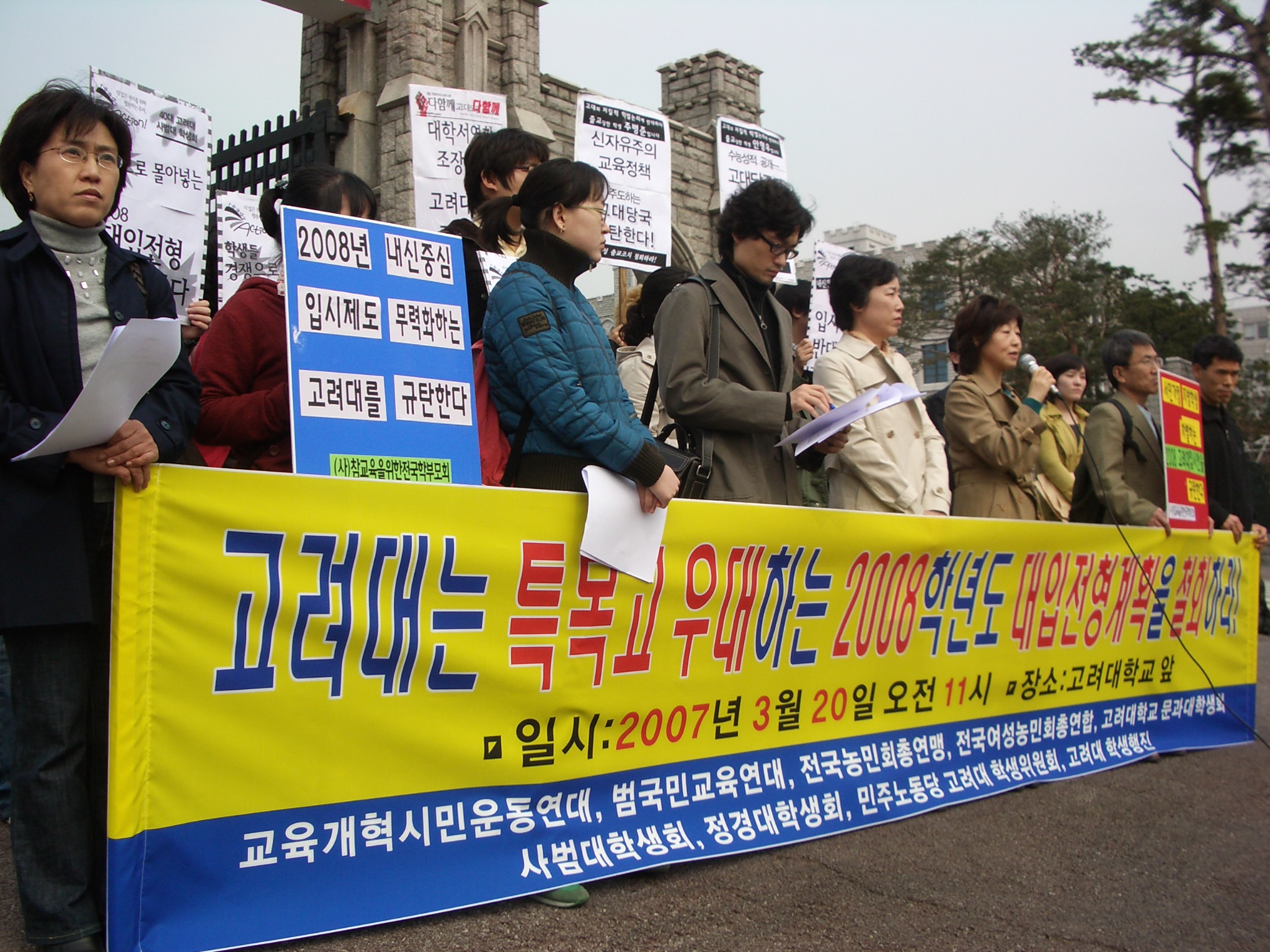 과거보다 훨씬 복잡하게 만든 2008 고려대입시안은 선발기준이 학업 성적에만 매몰되어있고 '열린 트라이앵글'을 빗대며 학생들에게 내신, 수능, ...