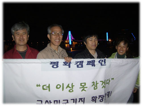 군산시민들은 군산미군기지로 인한 피해사실을 알리는 ‘군산기지 확장 의도와 철조망 설치’, ‘기름 및 오폐수 유출로 인한 토양과 수질 오염’...