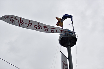 삼성 해고자 김용희 씨가 강남역 CCTV 철탑 위에서 고공농성을 한 지 31일, 단식한 지 38일째인 10일 오후 강남역 사거리에서 고공농성을 ...