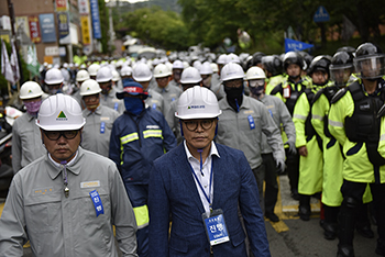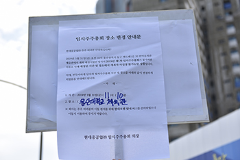 현대중공업이 ‘3분 주주총회’를 날치기 통과하는 가운데, 용역 폭력, 경찰 비호가 있었다는 사실이 드러났다. 현대중공업은 지난 31일 오전 11...
