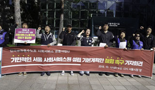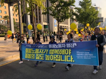 돌봄 노동자 도심 행진 “사회서비스원 공약대로 이행하라”