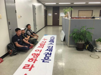 민주노총 금속노조 파인텍지회 노동자들이 모기업인 스타플렉스 김세권 대표와의 직접 교섭을 요구하며 서울 목동 스타플렉스 사무실 점거 농성에 돌입했...