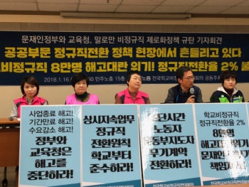공공부문 정규직 전환 대책에서 제외된 학교비정규직 노동자들이 고용불안을 호소하고 있다. 사업종료, 기간만료로 해당 비정규직 사업을 없애는 조치가...