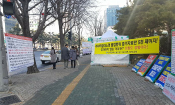 아사히글라스 비정규직 해고노동자들이 12일 수성구청의 행정대집행으로 철거됐던 대구지방검찰청 앞 농성장을 다시 설치했다. 검찰은 노동자들이 회사를...