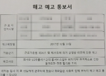 엘지유플러스 홈서비스센터 비정규직 노동자 수백 명이 엘지유플러스 하청으로부터 해고예고를 통보받았다고 희망연대노조 LGU+비정규직지부는 지난 1일...