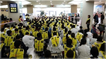 공공운수노조 의료연대본부 서울대병원분회 조합원 약 400명은 △서창석 서울대병원장 사퇴 △비정규직 1600명 정규직 전환 △의료공공성 강화 △복...