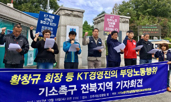 KT의 노동탄압에 대응하여 시민사회단체들이 만든 ‘KT민주화연대’와 ‘KT 노동인권 보장을 위한 전북대책위’가 부당노동행위로 KT 황창규 회장을...