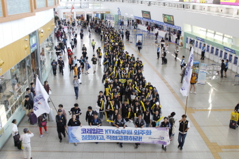 KTX 승무원 400여 명이 소속된 철도노조 코레일관광개발지부가 29일 오전 4시부로 파업에 돌입했다. 코레일관광개발 노동자가 민주노총 철도노조...
