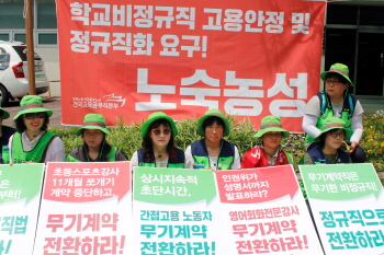 학교 비정규직, 일자리위원회 앞 노숙농성 돌입