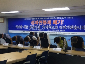 공공부문 노동조합과 정부가 성과연봉제를 폐기하기로 뜻을 모았다. 하지만 120개 공공기관 중 48개 기관만 철회 수순을 밟고, 72개 기관은 성...
