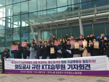 한국철도공사를 상대로 근로자지위확인 소송을 벌이다 패소한 KTX 승무원들이 새해부터 날아온 임금 반환 지급명령서에 대해 강력한 철회를 요구하고 ...