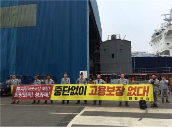 “조합원들이 우리 전체를 공격하는 것을 막아내는 방어막으로 경비나 식당 외주화를 허용해줄 수 있다는 생각을 하게 만들기 위한 겁니다. 어떤 사업...
