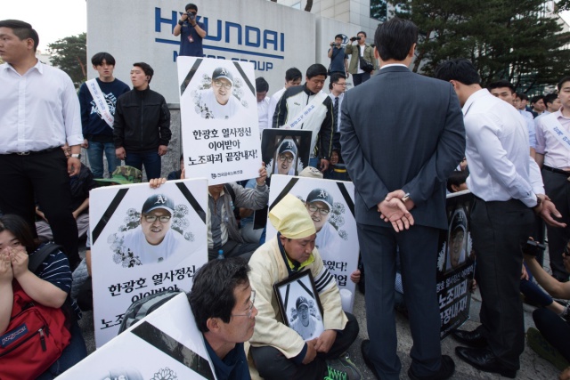 상징석을 둘러싼 노조, 현대차 그리고 경찰