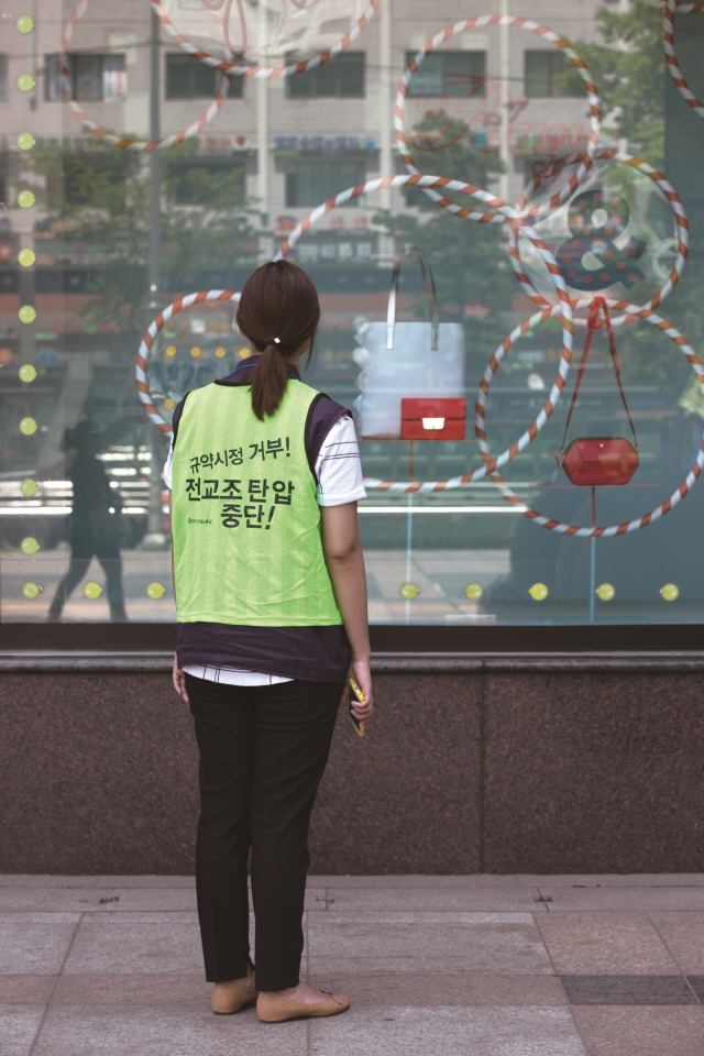 노조 조끼 위에 구호가 적힌 ‘몸 (대)자보’까지 걸치면 사람들은 어떻게 쳐다볼까. 노조 조직률이 10% 남짓이지만, 얼마 안 되는 노조마저 배...