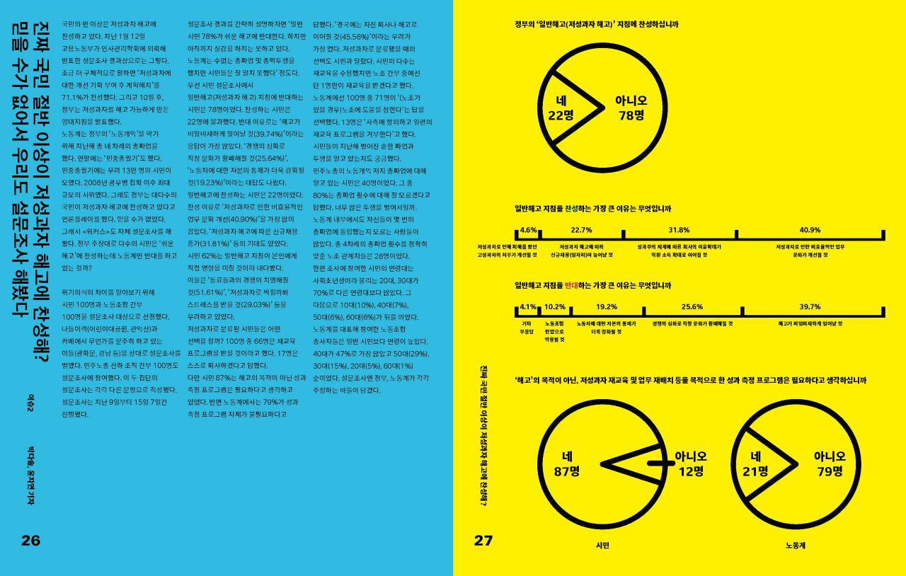 《워커스》가 자체 설문 조사를 했다. 정부 주장대로 다수 시민은 ‘쉬운 해고’에 찬성하는데 노동계만 반대하고 있는 걸까?
