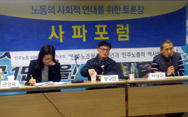 사회적파업연대기금이 24일 저녁 ‘민주노조운동 28년과 민주노총의 역사, 그리고 현재’란 주제로 12차 사파포럼을 열었다. 12차 사파포럼은 이...