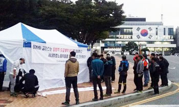 5일 오전 아사히사내하청노조가 경북 구미시에 대량해고 사태 해결을 촉구하며 시청 앞 천막농성에 돌입했다. 구미시에 있는 다국적기업 아사히글라스는...
