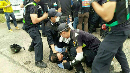 울산남부경찰서가 파업 중인 노동자를 연행하는 과정에 한 노동자가 부상당해 여덟 바늘을 꿰매는 등 노동자 피해가 크다. 경찰은 CJ택배노조 파업과...