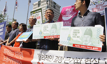 현대중공업사내하청지회가 강환구 현대미포조선 사장 퇴진 운동을 벌인다. 현대중공업하청지회와 금속노조 울산지부, 민주노총 울산지역본부 등 50여 명...
