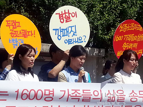 전국금속노조 갑을오토텍지회 조합원 가족들이 4일 오전 10시 30분 대전지방법원 천안지원 앞에서 기자회견을 갖고 신종 노조파괴 범죄자 구속을 촉...