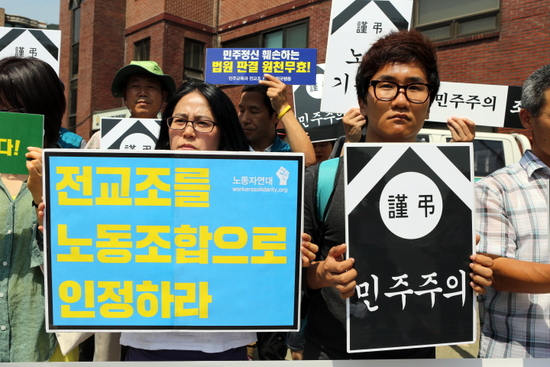 전국행동은 대법원 결정이 공개된 지난 3일 오후 긴급회의를 열고 “박 정권과 대법원의 전교조 죽이기를 규탄하고 전교조를 지키기 위한 활동을 벌이...