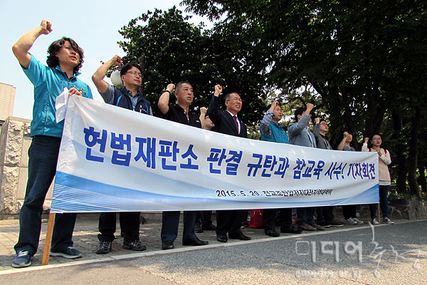헌법재판소가 해직된 교사의 조합원 자격을 인정하지 않는 교원노조법 제2조에 대해 합헌 결정을 내리자 전교조가 “역사의 시계를 거꾸로 돌리는 결정...