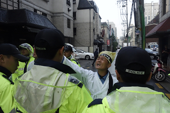 20년 동안 일했던 공장의 일방적인 폐업 이후 공장 분할매각 중단과 노사 합의에 따른 고용승계를 요구하며 2014년 5월 27일 구미 스타케미칼...
