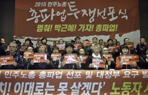 민주노총이 박근혜 대통령 취임 3년차를 맞은 25일 총파업을 공식 선포했다.