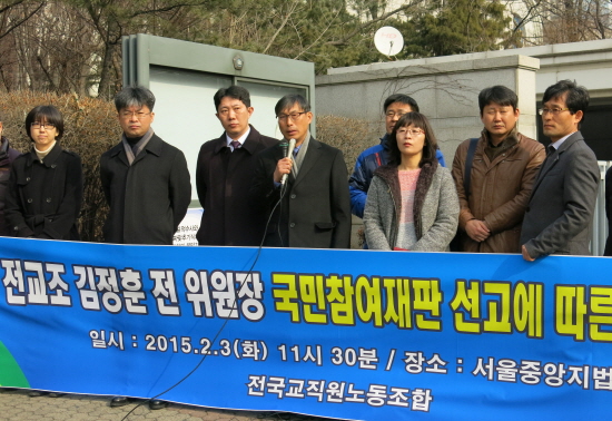 법원이 경찰의 민주노총 침탈에 저항하는 과정에서 진입 경찰에게 부상을 입힌 혐의로 기소된 김정훈 전 전교조위원장에게 징역 1년 6개월에 집행유예...