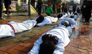 기륭노동자, ‘비정규직 철폐’ 걸고 한파 속 ‘오체투지’[1]