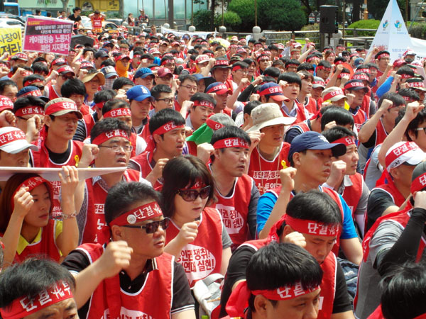 현대중공업노조는 27일 오후 20년 만에 파업을 진행했다. 노조는 이날 올 임단협이 여의치 않아 오후 1시부터 4시간 동안 부분파업에 돌입했다....