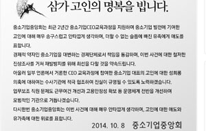 지난 9월 26일 중소기업중앙회 비정규직 여성노동자 자살 사건을 불렀던 정규직 전환 약속이 애초부터 거짓이었음이 드러났다. 정규직 전환을 원천봉...