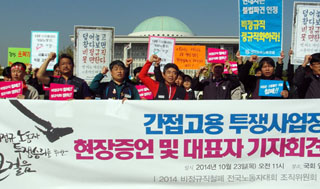 간접고용 사업장 노동자들로 구성돼 있는 ‘2014 비정규직 철폐 전국노동자대회 조직위원회(조직위원회)’대표자들은 22일 오전 11시, 국회 앞에...