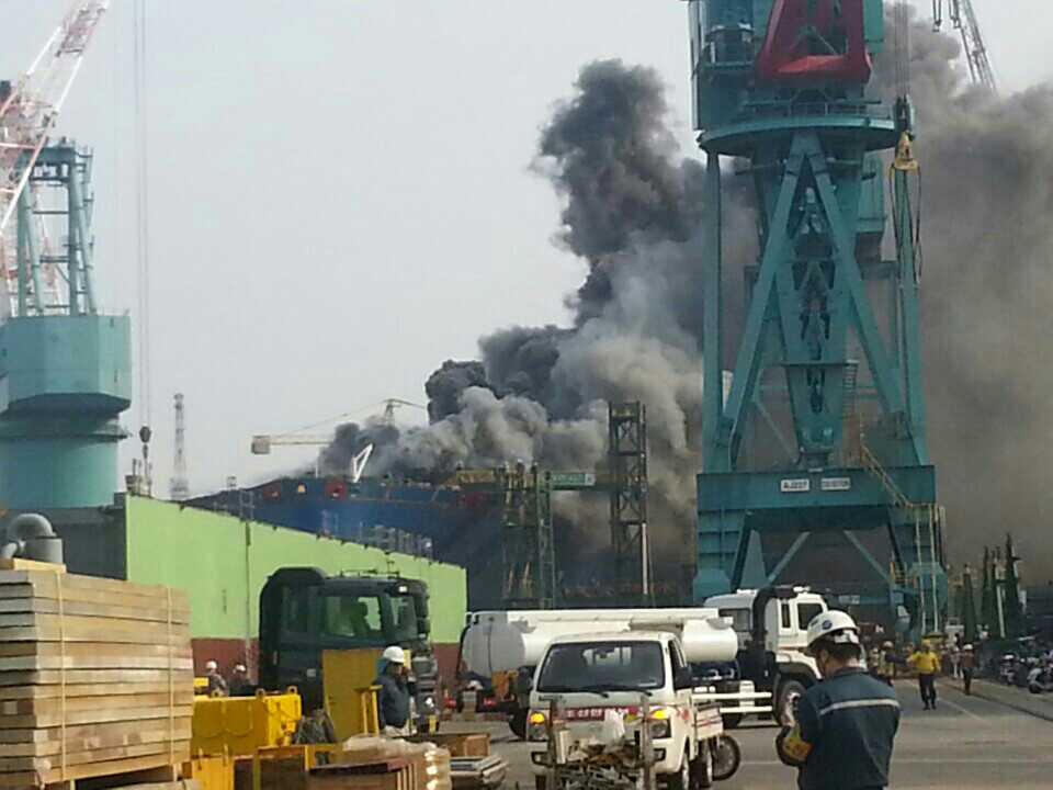 21일 오후 일어난 현대중공업 선박건조장 내 폭발 화재 사고로 2명의 하청노동자가 숨지고, 2명의 하청노동자가 다쳤다.