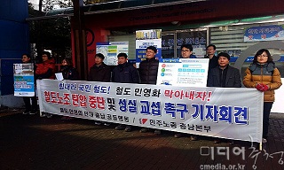 민주노총이 22일 오전 서울, 대전, 충남 등 전국 17개 주요 역사에서 동시 기자회견을 열고 “철도공사는 노조에 대한 부당한 탄압을 중단하고 ...