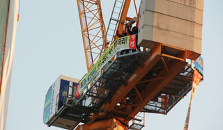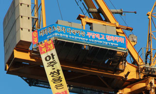 지난 14일 해고자 복직과 노조 인정을 요구하며 크레인 고공농성에 돌입했던 아주레미콘 노동자들이 회사 측과 합의를 이끌어냈다. 이들은 회사로부...
