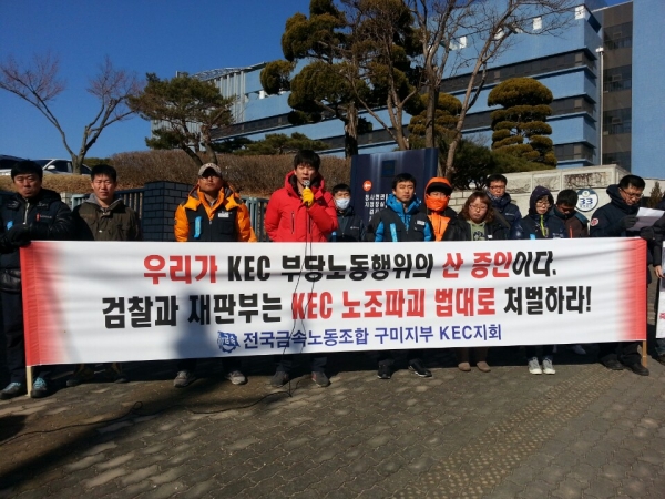 KEC지회 "우리가 부당노동행위 증인, 법대로 처벌하라"