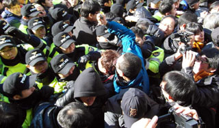 철도노조 집행부, 충돌 끝에 오후 5시 경 경찰에 자진출두