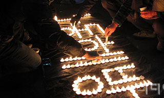 삼성전자서비스 앞에서 노동계 열사의 이름이 하나하나 불렸다. 충남지역 노동계는 13일 저녁 6시30분 삼성전자서비스 천안 두정센터(천안센터)에 ...
