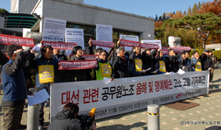 공무원노조는 13일 오전 서울 대검찰청 앞에서 기자회견을 열고, 노조를 검찰에 고발한 자유청년연합, 종북척결기사단과 해당 단체의 대표 2인을 비...